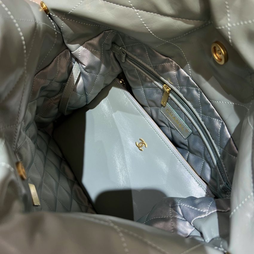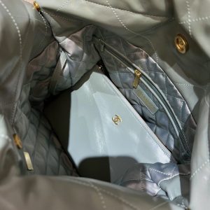 The soul of any luxury bag lies in its material and construction. Our replica CHANEL 22 Mint Green handbag begins with an exclusive selection of calfskin, chosen for its distinctive grain and supple drape. The leather undergoes a specialized treatment to achieve that specific, luxurious hand-feel and the rich, consistent mint green color saturation of the original. The “gathered edges” are not merely sewn; they are sculpted, creating the signature relaxed, crumpled silhouette that defines the CHANEL 22 line. The gold-tone hardware is where our commitment shines. Each turn-lock, chain link, and zipper pull is crafted from solid brass, not lightweight alloys. They undergo a multi-layered plating process to achieve the precise weight, luster, and engraved detailing, with edges meticulously polished to be flawlessly smooth to the touch.