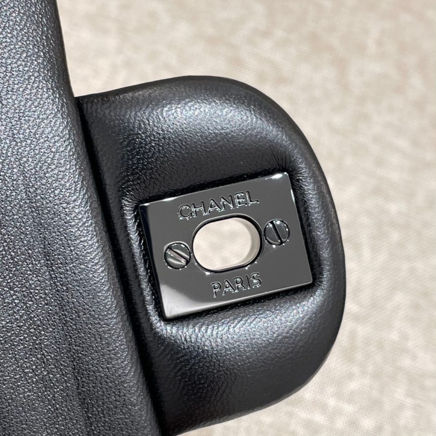 The hardware on this all black CHANEL Classic Flap replica is a masterclass in weight and finish. Each link of the woven chain strap, the iconic CC turn-lock, and the zipper pull is crafted from solid brass before undergoing a multi-layered plating process to achieve that perfect, enduring black-tone luster. The edges are refined and smooth, free from any rough seams. The engravings on the logo and the lock are crisp, clear, and precisely positioned. Holding this bag, you feel the satisfying, substantial weight—a tactile assurance of quality that cheap replicas cannot replicate.