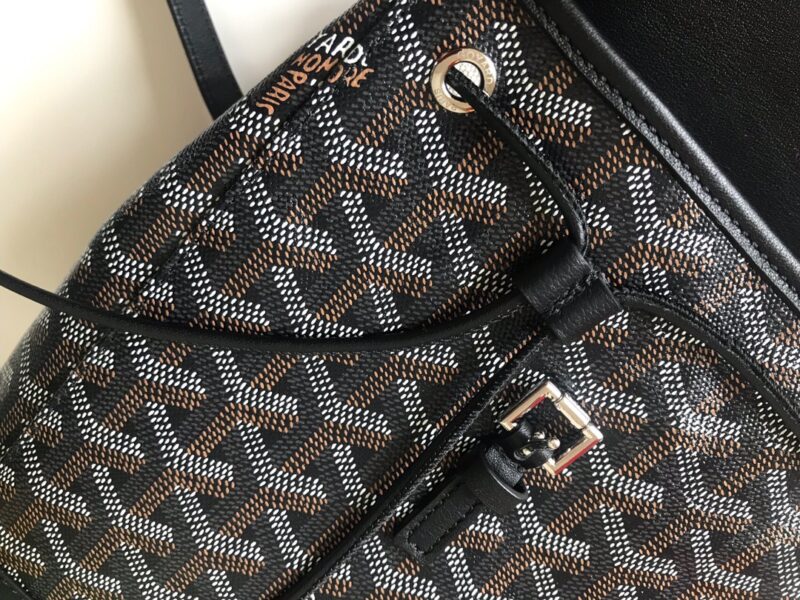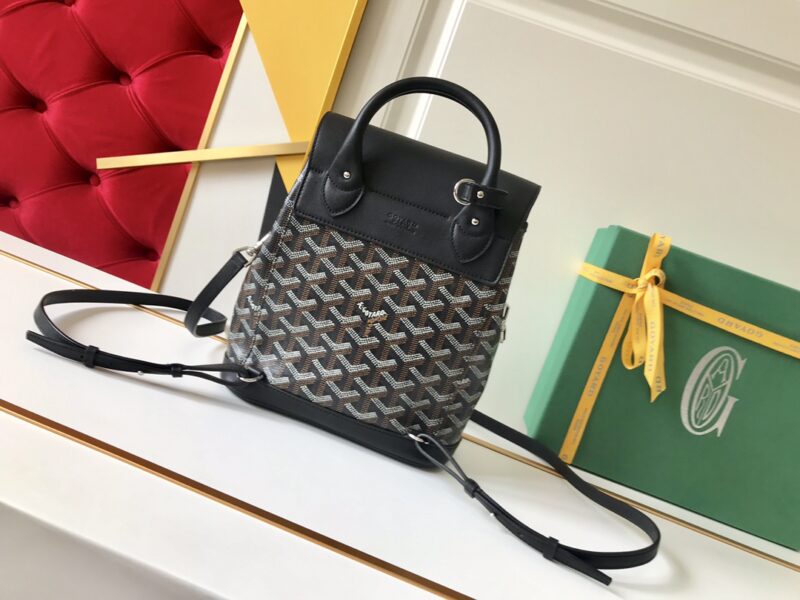 This mini backpack echoes the visual language associated with the Goyard aesthetic: a distinctive patterned surface, crisp edges, and a quiet sense of status that does not rely on loud branding. The compact shape helps it sit neatly on the back or in hand, while the black colorway creates a more versatile, fashion-forward appearance. It is the kind of bag that complements both minimal wardrobes and more statement-driven outfits.
