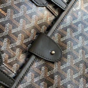 Every detail of this top-tier 1:1 replica is considered to mirror the authentic Goyard Ambassade experience. The body is fashioned from the distinctive Goyardine coated canvas, renowned for its signature chevron dot pattern. This isn’t standard canvas; it’s a specialized material treated for exceptional water resistance and feather-light durability. The rich, dark brown leather trim is carefully selected for its texture and resilience, aging gracefully with use. Hardware—from the polished clasps to the smooth-running zipper pulls—features accurate Goyard hallmarks with crisp, clean engraving. Each stitch aligns with precision, a testament to the hands-on expertise Joyce May ensures in every piece that leaves our workshop.