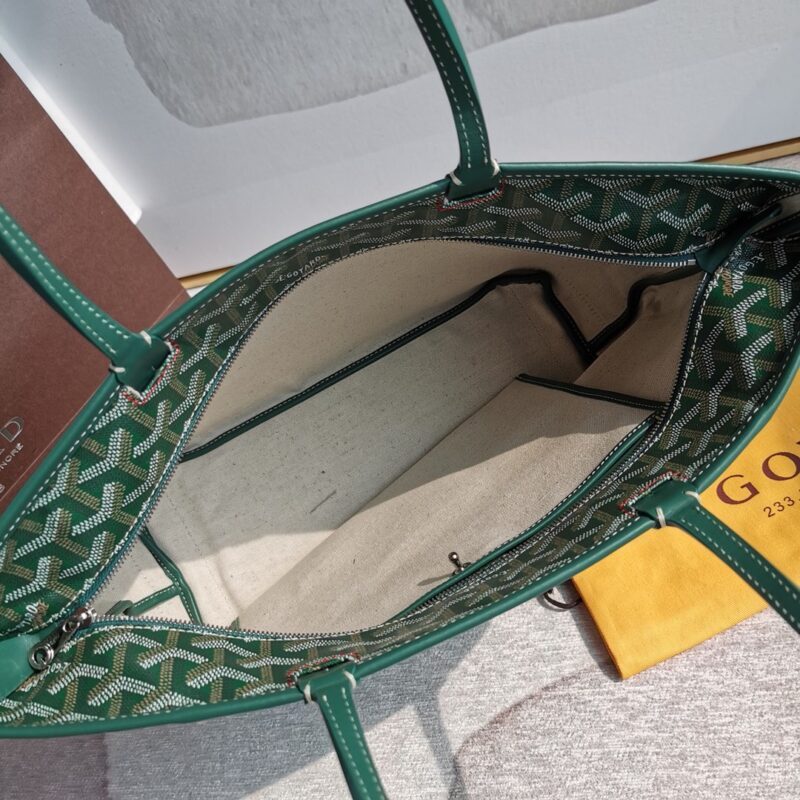 The chosen green hue is a stroke of sartorial genius. It speaks of refined taste—a versatile, earthy sophistication that complements everything from crisp white shirts and denim to rich browns and creams. It’s a color that is both noticeable and nuanced, allowing the exquisite craftsmanship and iconic pattern to take center stage. This top-quality Goyard bag dupe is for those who communicate their status through subtlety, recognized and admired by a discerning few.