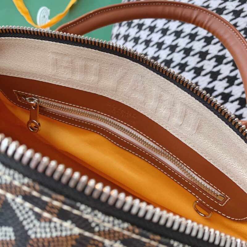 The soul of this bag lies in its material and construction. We source a proprietary coated canvas that perfectly replicates the legendary Goyardine fabric. This is not ordinary canvas; it features the iconic hand-painted chevron pattern with dots, a technique first developed in the 19th century. The coating is applied with precision, granting the bag remarkable water resistance and a signature matte, pebbled texture that is both durable and exceptionally lightweight. The leather trim and handles are selected for their supple feel and rich patina, aging gracefully with use, while the hardware—whether you choose gold or silver-tone—is solid, with weighty clasps and zipper pulls bearing crisp, legible Goyard hallmarks. Every stitch aligns perfectly, a testament to the artisan skill we leverage in Guangzhou.