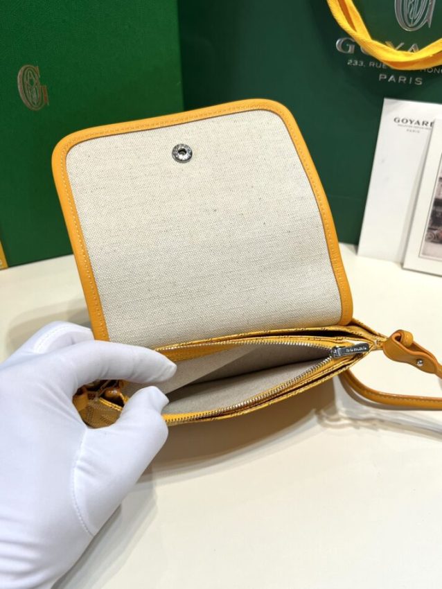 Introducing our replica Goyard Plumet Pocket Wallet Yellow — a meticulously crafted piece in Goyardine coated canvas that mirrors the design language of the original. For anyone searching for the best Goyard replica bag, this piece delivers on materials, proportions, and finishing.