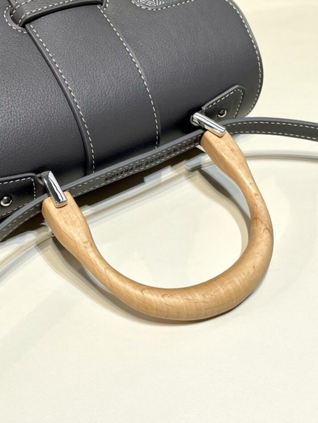 A: It is crafted from replicated Goyardine coated canvas with genuine leather trim. The coating provides excellent resistance to light moisture and scuffs, ensuring the bag remains a durable companion for years. It maintains the iconic look while being practically lightweight.