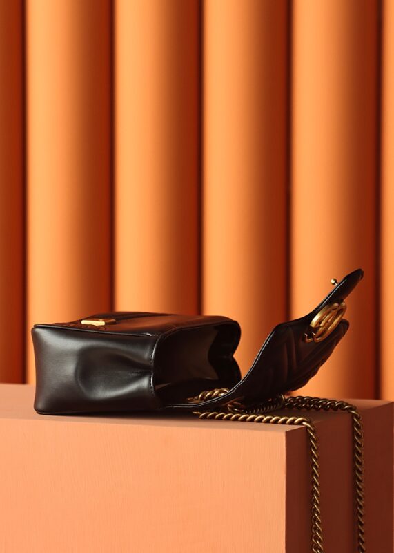 This dimensional ratio was deliberately calibrated by Gucci design studios to achieve visual balance. The bag is substantial enough to accommodate daily essentials—smartphone, slim wallet, cosmetics, sunglasses, keys, face masks—while remaining compact enough for evening occasions and formal settings. Our replica maintains these exacting proportions through precision pattern cutting, careful leather stretching during assembly, and structured interfacing within the exterior leather.