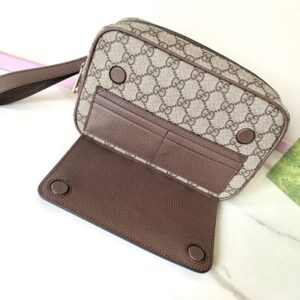The Ophidia collection is a direct conversation with Gucci’s rich history, reviving the iconic GG Supreme canvas and the heritage Green-Red-Web stripe. This replica clutch masterfully balances that vintage appeal with a clean, structured silhouette. The beige canvas offers a versatile, neutral elegance, providing a sophisticated canvas for the bold logo and vibrant stripe. It’s a piece that speaks to both classic sensibility and contemporary style, perfectly sized at 14.5cm (H) x 23.5cm (W) x 6cm (D) for your evening essentials, from a smartphone to a lipstick and cards.