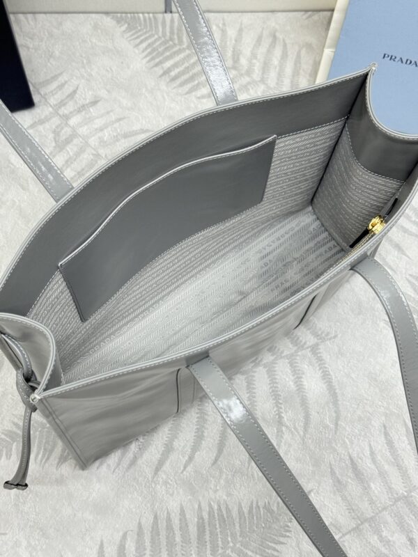 This grey hue is a masterstroke of versatility. It offers a softer, more contemporary alternative to black, conveying sophistication without severity. It transitions effortlessly from a day at the office to weekend brunch, carrying your laptop, documents, and daily essentials with an air of composed elegance that is uniquely Prada.